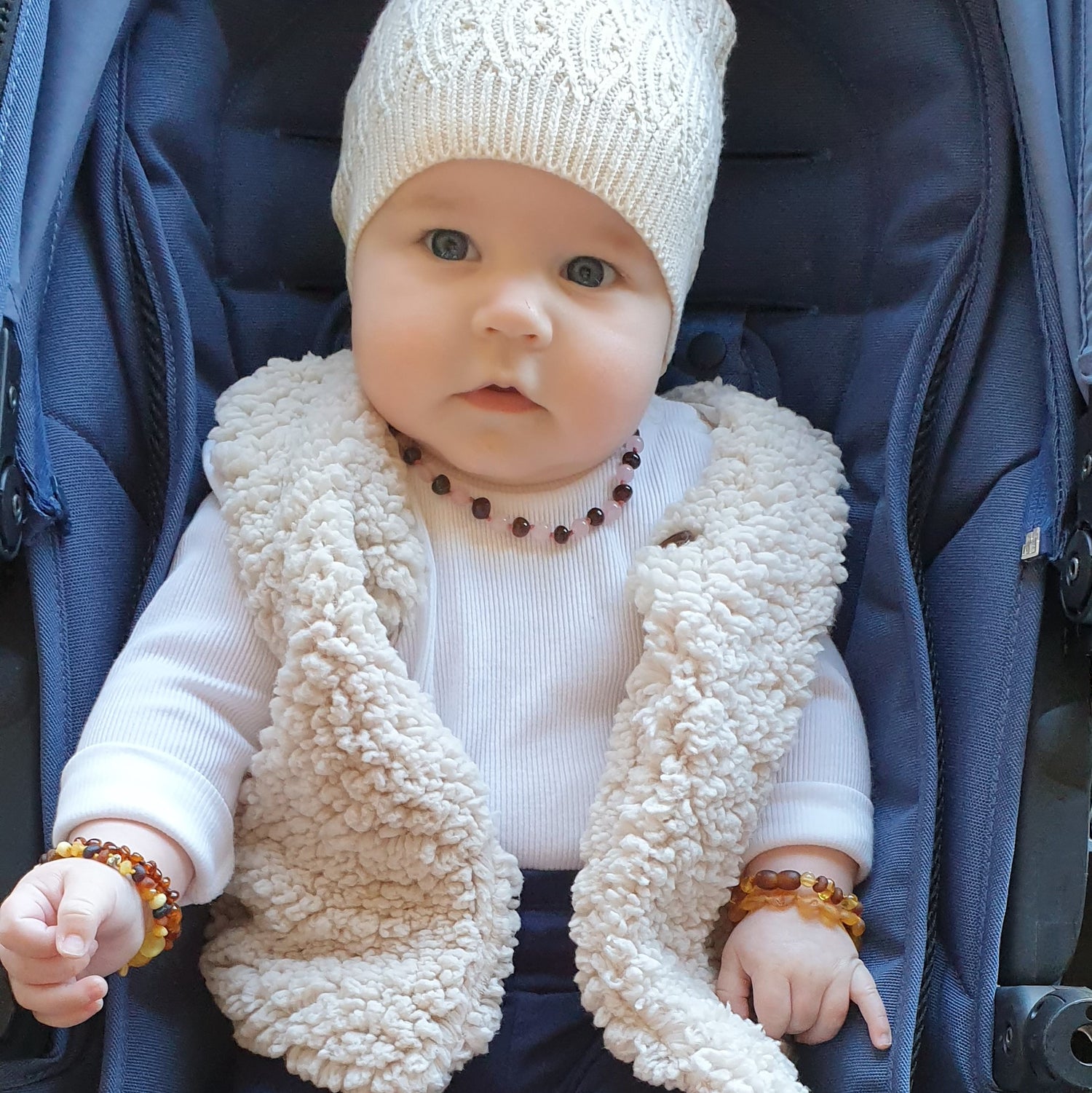 Amber is a natural analgesic and has therapeutic healing properties. When worn next to the skin, amber is warmed by our body heat which releases the succinic acid. This is absorbed firstly into the skin and then through the bloodstream, aiding in the relief of teething pain. These amber necklaces are designed to sooth and aid your child throughout the teething process.